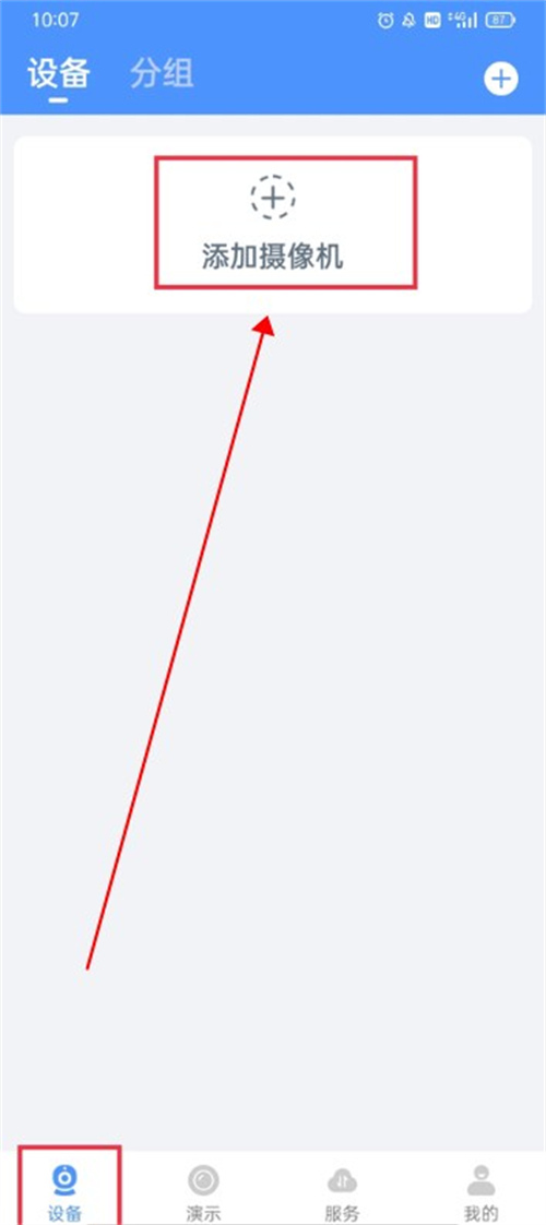 1、进入设备界面,点击上方的添加摄像机按钮。