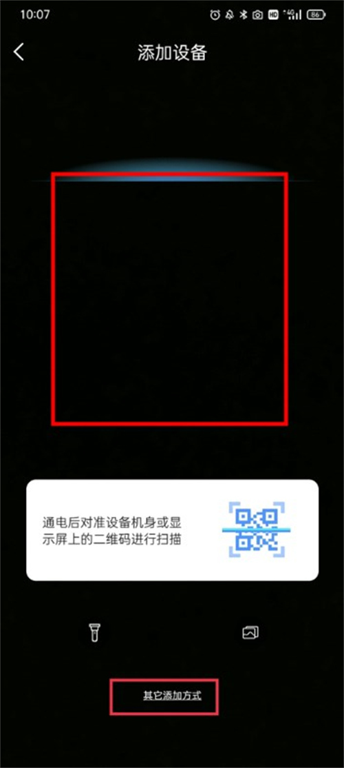 4、把手机的扫描框对准设备上的二维码扫描,就能完成连接了。