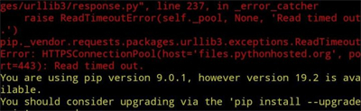 4、这是命令窗口下pip安装失败时,按照黄色提示进行操作的情况说明。