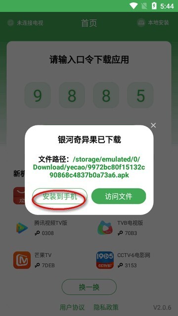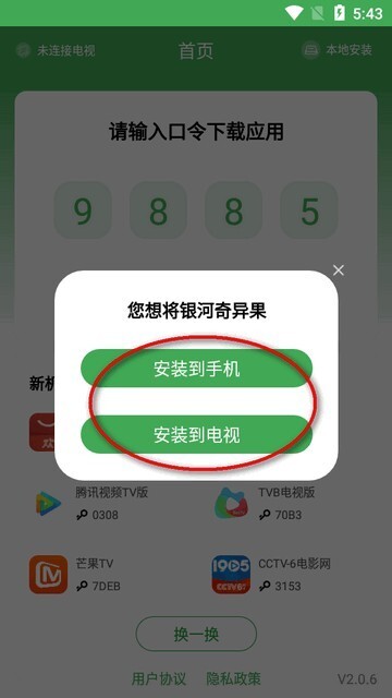 3、软件会提示安装到手机上还是安装到电视上。