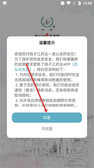 2、当温馨提示弹窗出现时,请仔细阅读《隐私权条款》的相关内容,随后点击【同意】按钮,即可继续使用该应用。