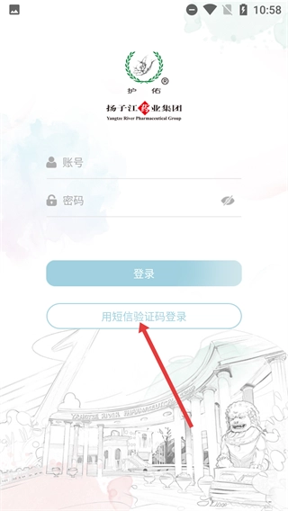 3、在登录页面,点击【用短信验证码登录】选项,切换至短信验证的登录方式。