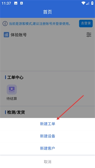 2、在弹出的菜单中,选择【新建工单】选项,进入工单类型选择界面。