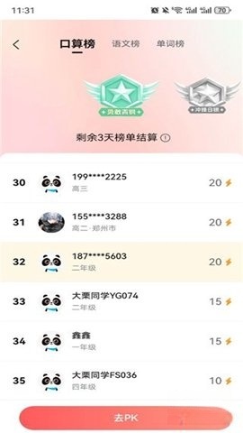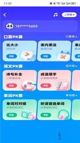 3、下方提供了口算PK、语文PK、单词PK等多种玩法。