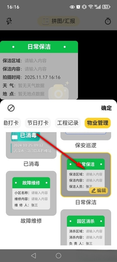 考勤打卡、工作记录拍照、物业管理、建筑工程管理、执勤记录、品牌宣传、会议记录等多种工作记录的专属模板。