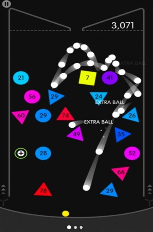 3、点击弹球:点击游戏屏幕上方的弹球即可将其释放,观察它的运动方向变化。