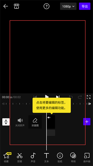 3、进入视频编辑界面,可通过底部功能栏(剪辑、声音、文本等)对素材进行编辑。
