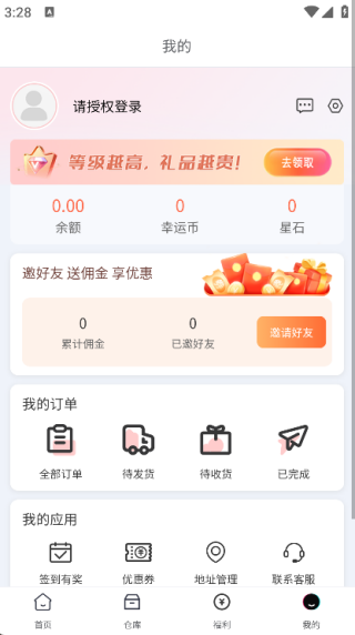 4. 点击页面下方的‘我的’,即可登录账户,查看我的订单、我的应用等功能。