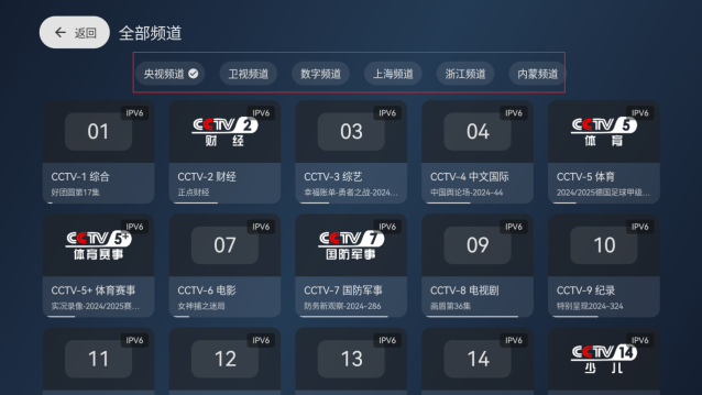 3、如图,可以根据个人需求选择相应的频道进行播放。