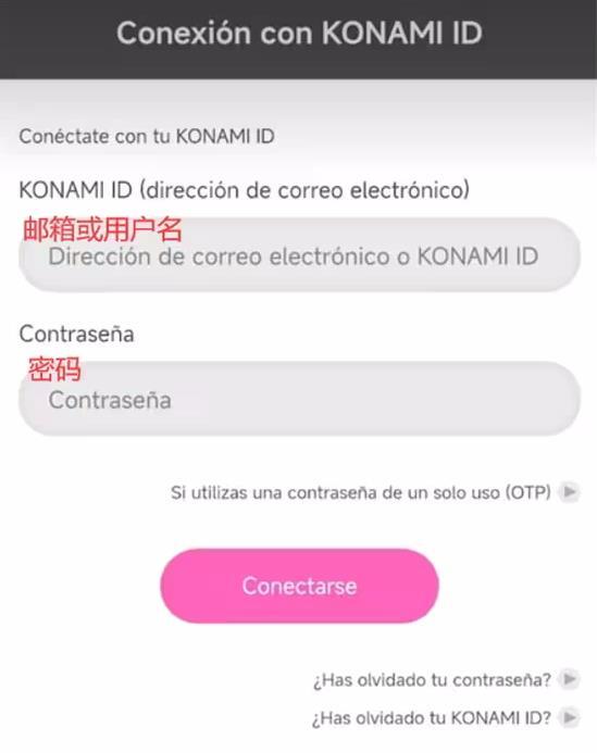 3、输入需进行数据引继的账号与密码,即可完成KONAMI账号继承,达成PC端与手机端账号互通;