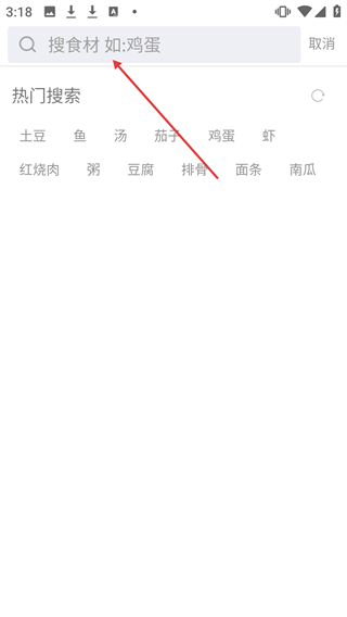 1、点击食谱页面右上角的搜索图标,进入搜索页面。