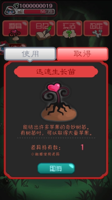 4、游戏内配备了丰富多样的道具,有不同种类的苹果、各类种子,还有可用于交换的便利道具等,这些道具的存在让游戏的挑战性与趣味性都得到了提升。
