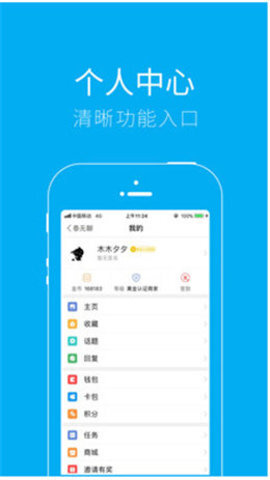 1、个人设置中心,清晰的功能入口,主页、收藏、话题、回复等,使用方便