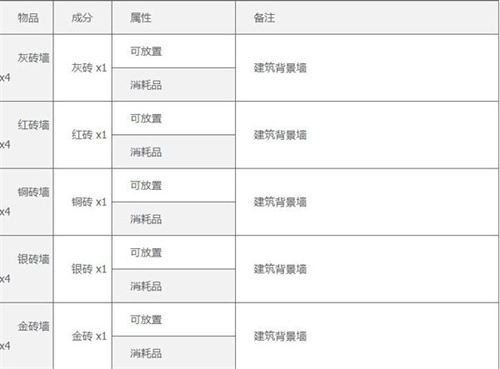 5、工作台合成表: