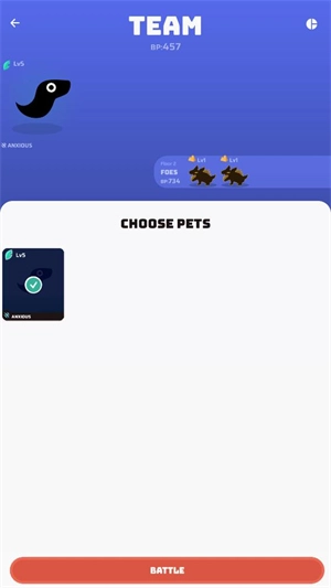 2、点击后你可以选择自己上阵的宠物,选好后点击battle正式开始战斗。