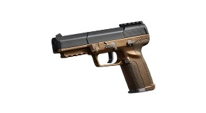 空投武器(地铁模式暂不上线),采用与P90冲锋枪相同的5.7mm口径弹药。套筒为钢塑复合材质,既保证了结构强度又实现了轻量化设计,同时经过改装支持全自动射击。该武器具备专属特性,玩家倒地状态下仍可使用(F57手枪特有功能)。