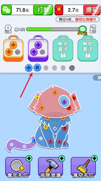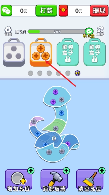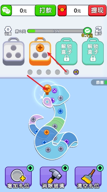 2、当盒子中凑满了三颗螺丝之后就会自动消除,并出现新的螺丝盒。
