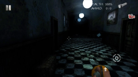 从桌上拿起手电筒(摄影机),再从床上找到钥匙。拿到钥匙后会有一扇门自动开启,你继续往前走,转过两个弯后会遇到怪物挡路,稍微靠近它引它追过来,然后转身跑开,它就会消失。接着走到路口,会看到一个红人,你得离他远一点,等他走开后就立刻冲向门口——左右两边都是死路,等你到达楼梯时,游戏里最恐怖的场景就会出现。