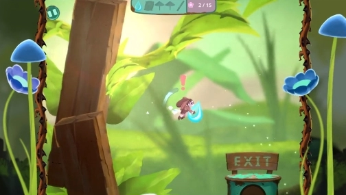 1、第一关:进入游戏,根据手势平衡感控制小精灵飞出丛林。注意不要撞到树木哦!
