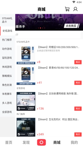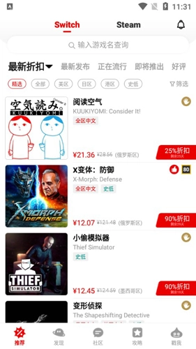 2、进入游戏打折页面,你可以浏览最近的打折信息。