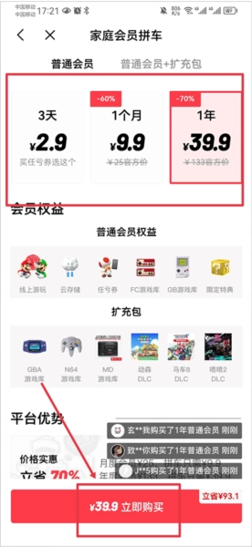 2、进入后选择你想购买的套餐类型,接着点击立即购买按钮就可以了。