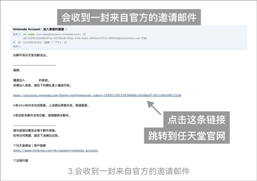 4、支付成功后,您填写的任天堂账号邮箱会收到标题为\\" Nintendo Account :加入家庭的邀請\\"的邮件,点击下方链接后进入 Jump 家庭组