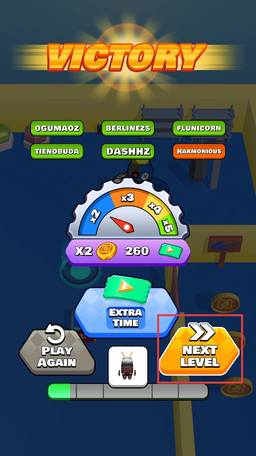 4、胜利后点击【NEXTLEVEL】,继续体验刺激追捕,挑战更高难度吧。