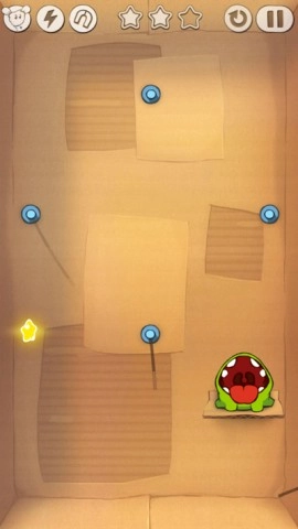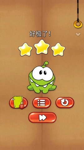 ◆ 在游戏里,你需要通过剪断绳子,让糖果成功撞碎周围的星星,最后把它送到Om Nom的口中。