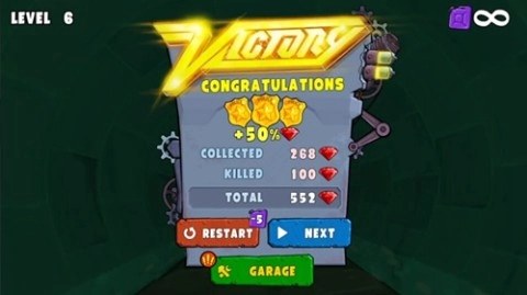 2、完成关卡后,您将获得钻石奖励,包括通关和击杀车辆的奖励,星级越高奖励越丰厚。