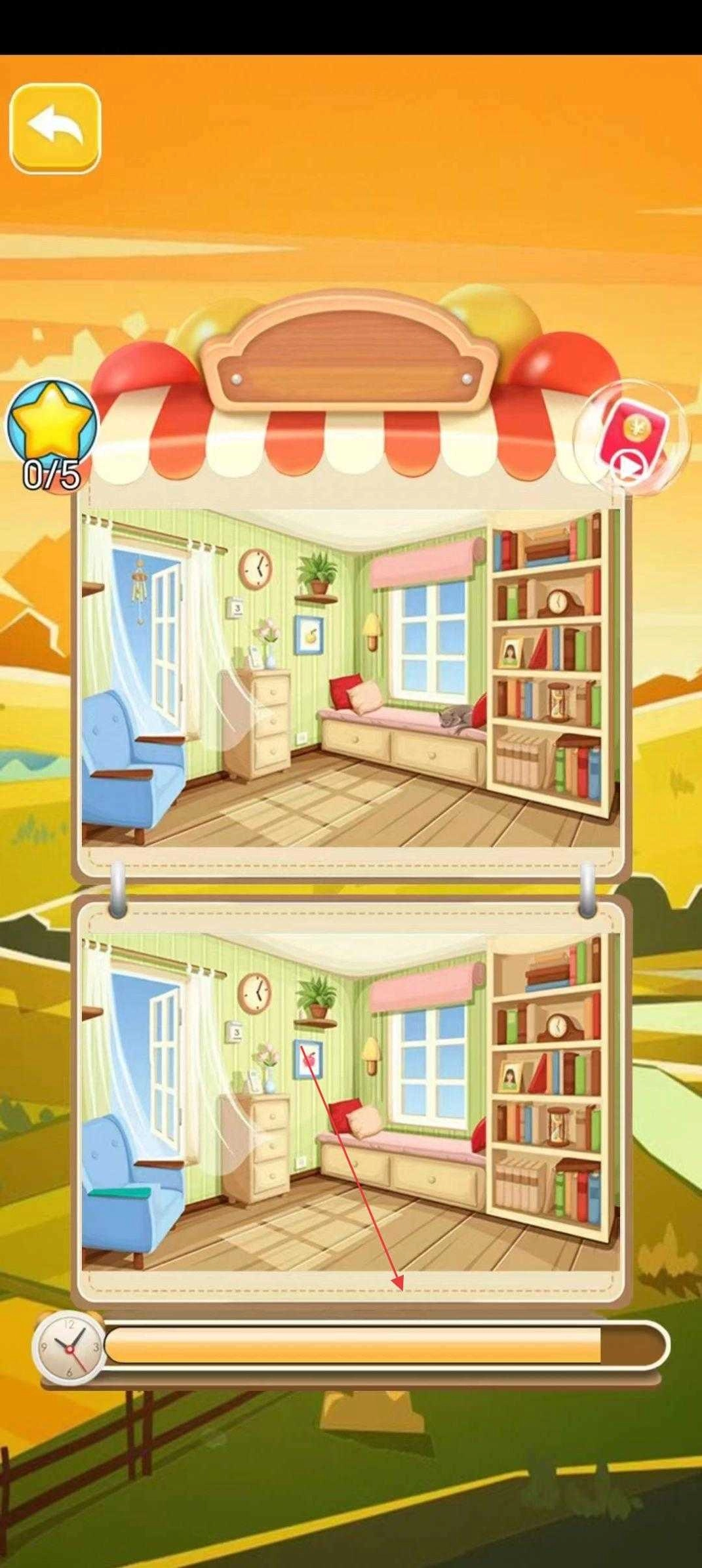 1、进入游戏界面后,仔细对照房间场景图,快速找出其中的差异之处,从而完成当前的找茬任务。