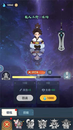2、点击下方主角按钮可以消耗灵力来进行修炼,能提升主角境界。