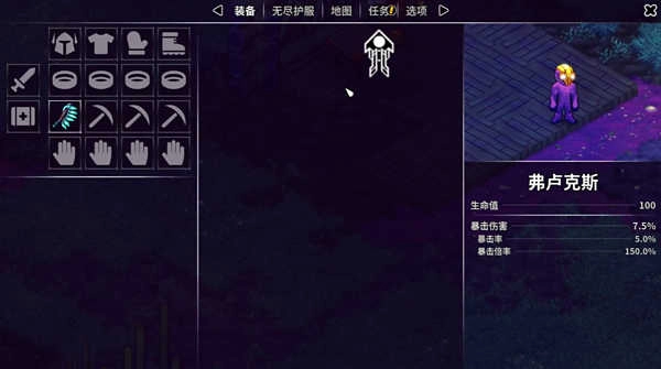 6、右上角菜单可以调整装备,保存游戏进度等功能。