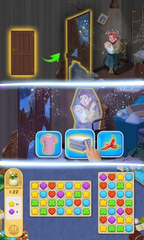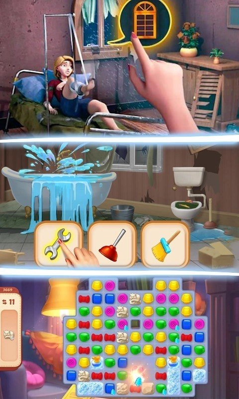 2、欢乐的游戏体验,经典消除,赚取大量的装修材料;