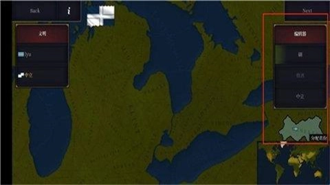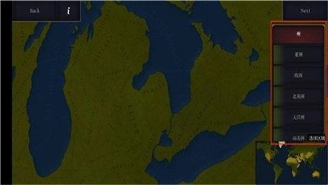 4、进入创建页面后,在右侧可以选择大洲,接着点击地图就能划定势力范围。