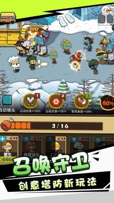 3.技能升级:完成任务和收集资源来升级自己的技能,提高塔防设施和幸存者的属性,增加战斗力。