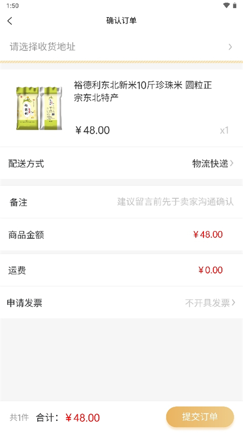4、然后点击提交订单,输入地址后点击付款即可;
