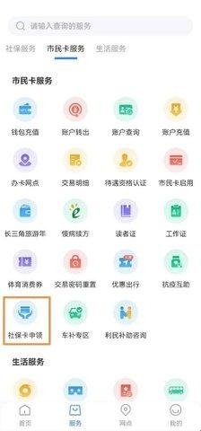 1、登录市民卡,选择市民卡服务中的社保卡申领模块进行办理。