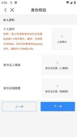 5、上传个人照片和身份证正反面照片,并点击“下一步”。