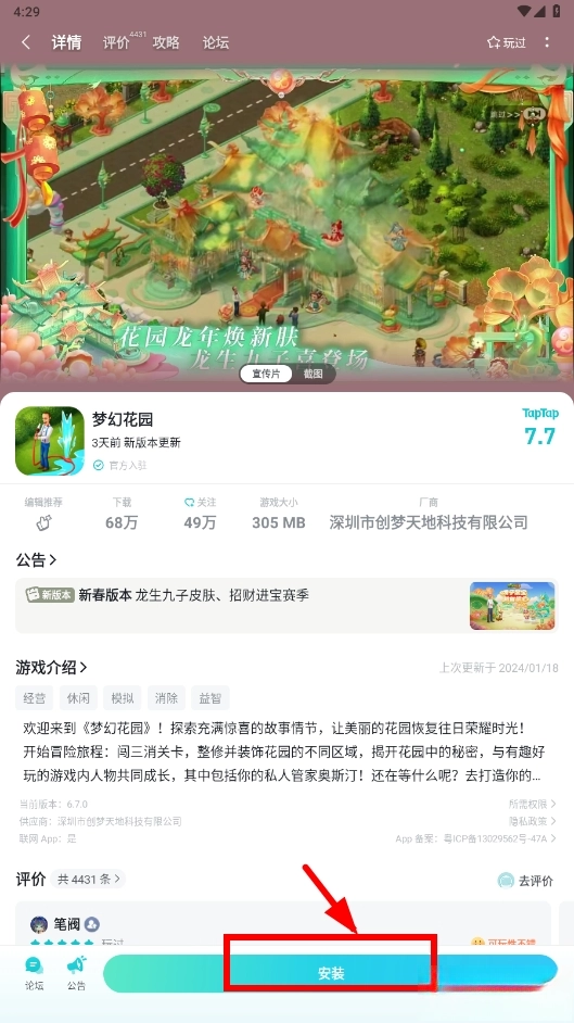 1.打开taptap,搜索自己想要的游戏,这里以梦幻花园为例