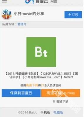 3、用户在搜索结果列表里找到所需资源后,点击该资源就能进入相应界面。此界面提供了保存至百度云、高速下载、普通下载三种获取方式,用户可依据自身需求进行选择。