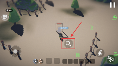 2、点击放大镜图标,探索区域搜寻物资、发现敌人,增强作战能力。
