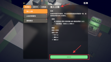 4、查看【猎人上路】任务,点击【接受任务】,推进剧情并获取奖励。