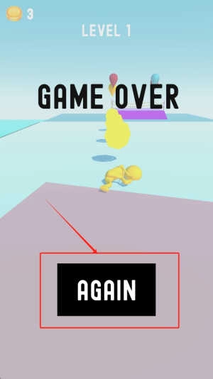 3、重新开始:如果游戏结束,点击“AGAIN”按钮重新开始当前关卡。