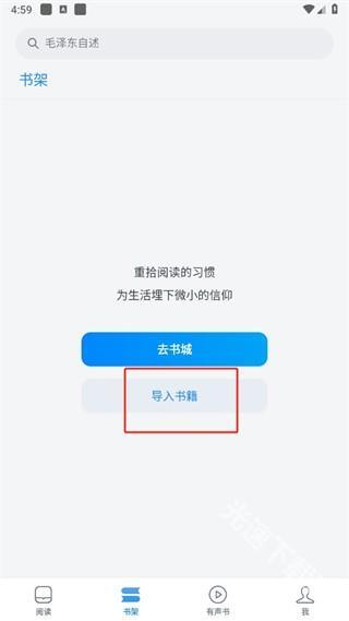2、然后来到书架的页面中我们需要点击的是【导入书籍】;