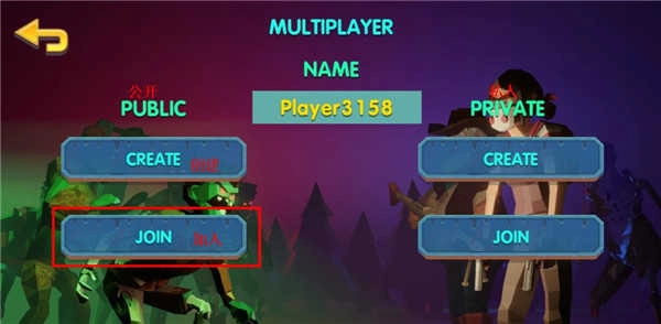 2、可在公共房间与私人房间中选择创建房间或加入房间。