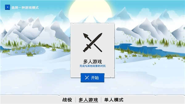 1、在本站下载并安装《火柴人战争遗产3》,进入游戏后默认使用简体中文语言,点击右下角的“开始游戏”按钮即可进入游戏。