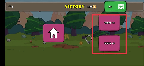 6、胜利后,你可以点击WAVE+1和WAVE+5来增加游戏中的敌人波数