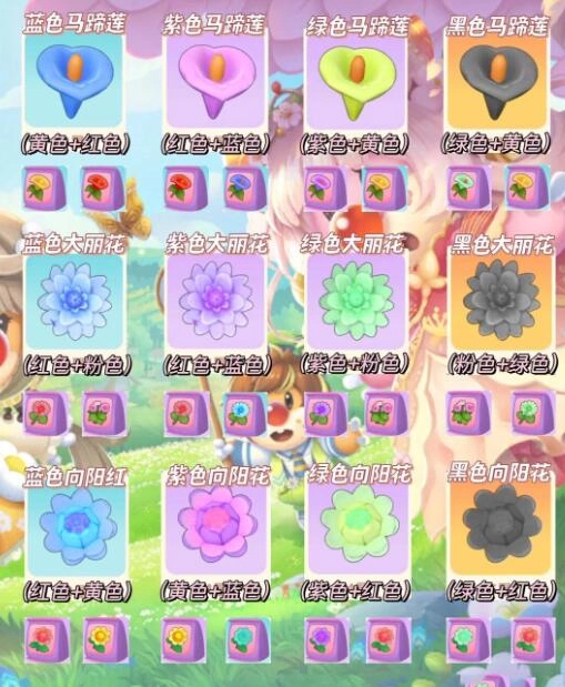 2、紫色大丽花=蓝色大丽花 +红色大丽花
