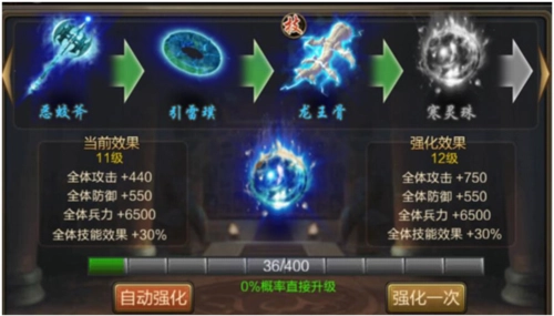 5、八大军阵提供不同属性加成,根据战况灵活调整,全面提升部队战力。
