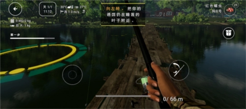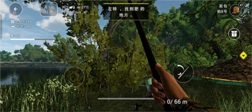3、左边的遥控是控制方向的,我滑动左下角的摇杆来到最好的钓鱼位置。